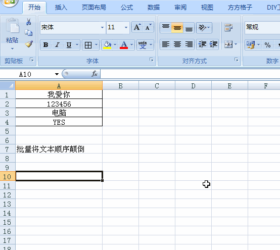 技巧3:文本倒序 (原来是这样子的倒序啊)