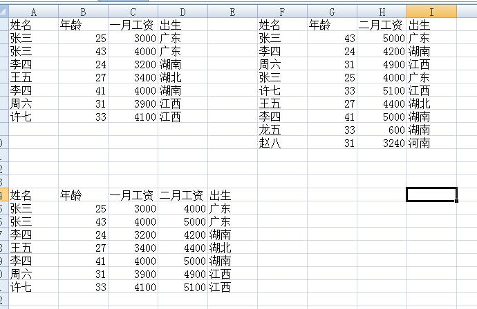 希望把表中上面两处合并成下面一样,一月份没有龙五和赵八,要剔除。我的真实东西很大,希望各位好心人帮忙指点指点