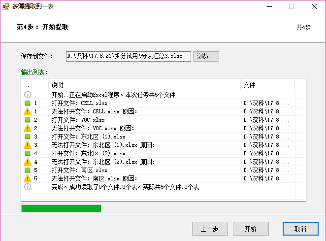 是不是因为公司的文件都有权限设置的原因,但很奇怪的是 用 方方格子里面的 汇总 或者 合并多簿的功能 都可以正常操作,,但打开汇总大师,用 多簿提取到一表功能的时候,就会出现 上述的 错误提示 “无法打开文件”