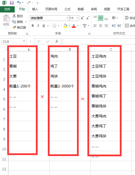 A列和B列相乘,得出C列。