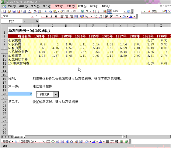 说明:利用窗体控件和查找函数建立动态数据源,进而实现动态图表。