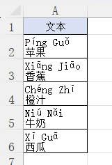 2.选择区域A2:A6,显示完整注音,拼音间隔字符设为空,结果保存为区域内容,然后点击确定按钮