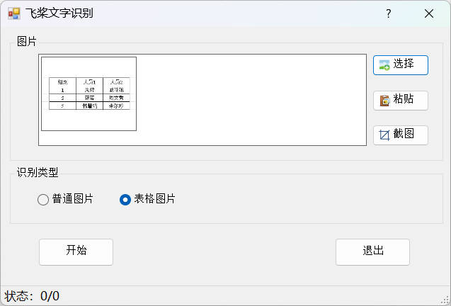 2.选择需要识别的图片,识别类型选择 表格图片,然后点击开始按钮