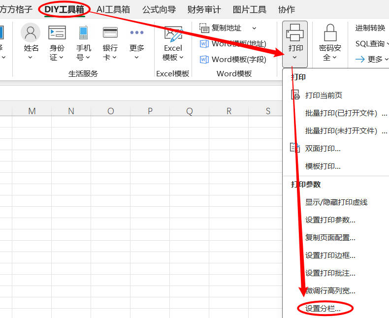 1.点击 DIY 工具箱 > 打印 > 设置分栏…