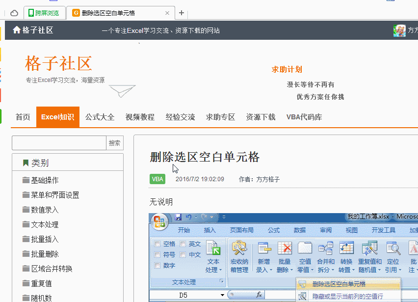 1. 拷贝本功能的标题,如上图中的“删除选区空白单元格”。