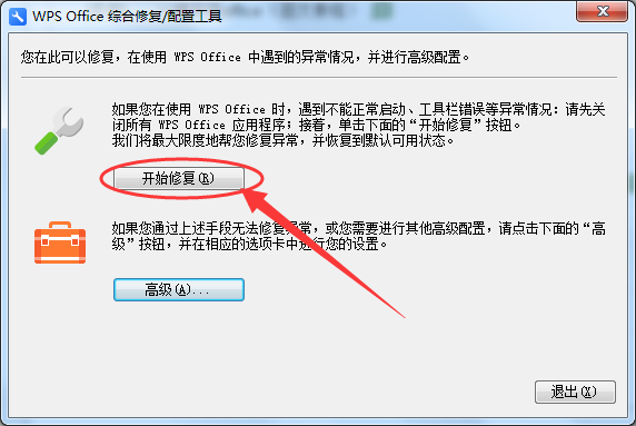 2. 打开配置工具后,点击开始修复按钮。如下图: