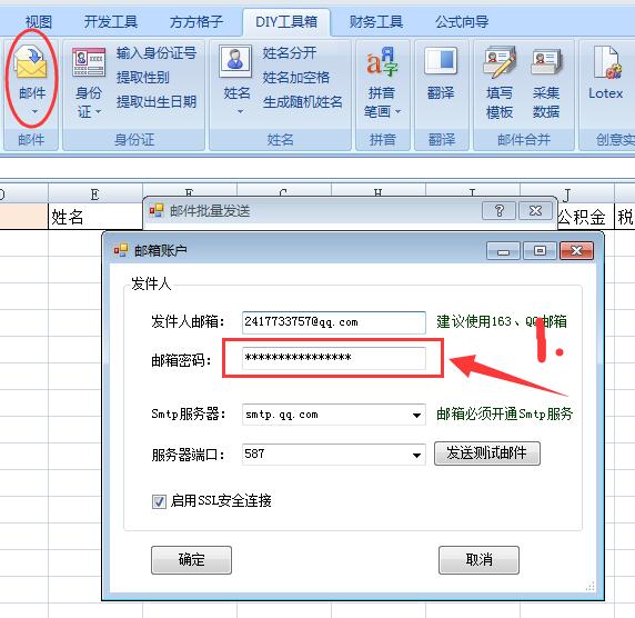 首次使用方方格子工具箱中的邮件批量发送,需要先设置下发件人邮箱。