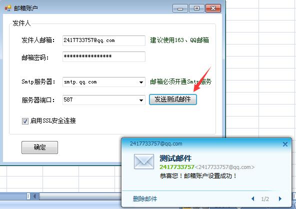 完成设置后,记得要先发送测试邮件。如果设置成功,自己的邮箱将收到一封邮件。