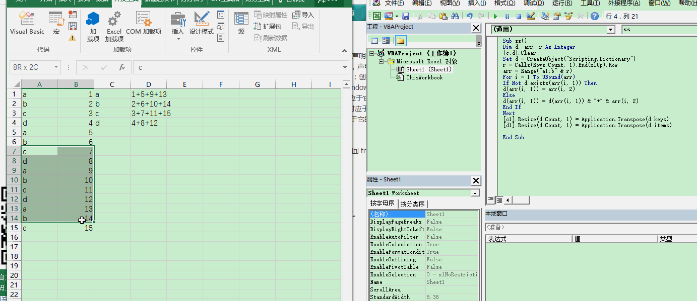 d(arr(i, 1)) = d(arr(i, 1)) & "+" & arr(i, 2)