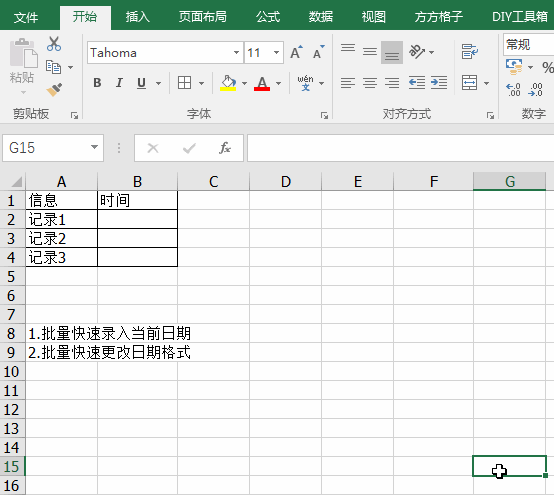 我们用方方格子Excel工具箱中的录入当前日期功能,还可以批量设置日期格式,请看动画: