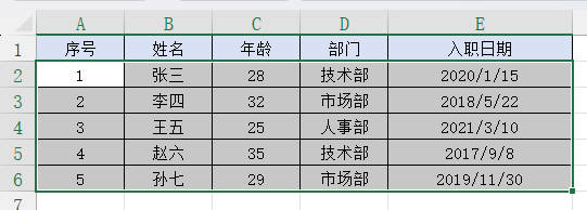 1. 选择区域A2:E6