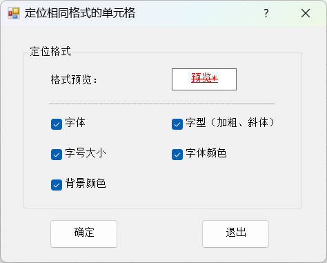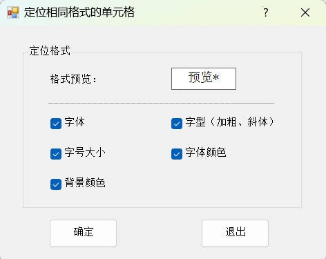 定位相同格式功能,包括单元格字体、字型、字体大小、字体颜色、背景颜色的格式,支持快速查找并选中工作表中格式一致的单元格,选中后可批量修改、统一调整或清理格式,提升数据处理效率。
