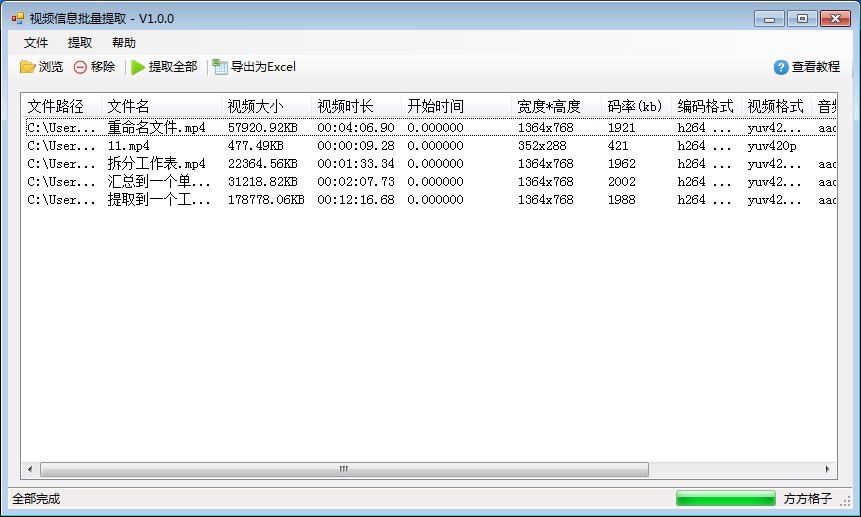 提供视频文件信息的批量提取功能,支持导出为Excel。