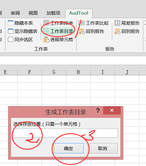 点击【工作表目录】-鼠标点选单元格【选择存放位置】--确定