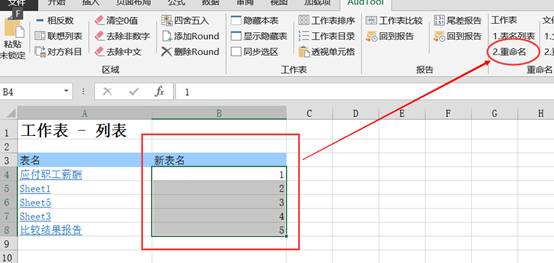 工作簿中有很多工作表,我们的底稿索引号是拥有规则的,或者我们想改变规则,这时候就用这个功能批量重命名打开工作簿中的工作表名称。设计的方法是,先获取目前的工作表名称,然后在对应的同一行中输入新的名称,然后改为新的名称。