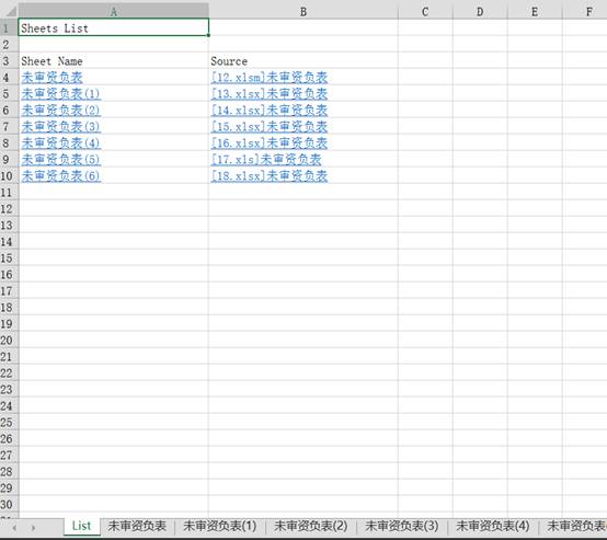 该功能可以提取文件夹中指定若干文件的相同表格的相同区域,并连续放置在同一个工作表中,并与源工作表建立超链接。此功能可以用于合并报表,合并附注等。