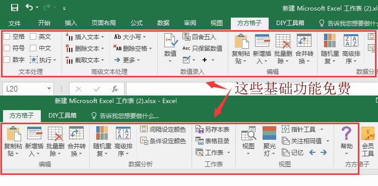 方方格子分为:1. 基础功能,免费使用